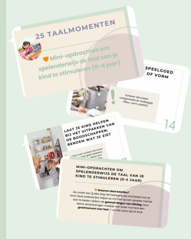 Daarom ontwikkelden wij de 25 taalmomenten, en je kan ze nu aanschaffen met een hele fijne korting! Je koopt ze tijdelijk voor: